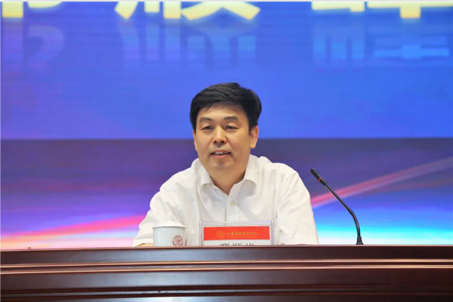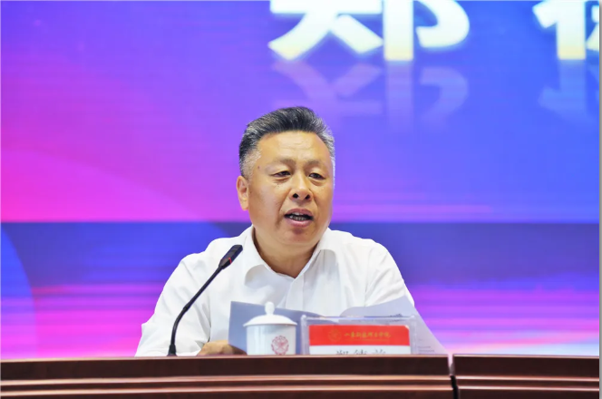 邢顺峰在仪式上讲话,他高度评价了学院多年来持续推进职业教育教学改革取得的成绩。他指出,学校有非常好的办学基础,取得了一系列成绩,但同时也要对标找差距,持续加强研究,不断提升学校的发展竞争力。他强调,“双高计划”建设必须扎根产业链,“双高计划”建设必须对接产业链的每一个环节,职业教育还要做好科学研究工作,以研究带动实践。他指出,学校要为教师发展尤其是技能水平提升提供更多的便利条件和激励措施,多方面鼓励教师不断提升技能水平。同时他对教师和教育科研人员提出了殷切的期望,期望老师们能够练就自身本领,全身心投入到职业教育发展中,以期为社会、产业做出更大贡献。