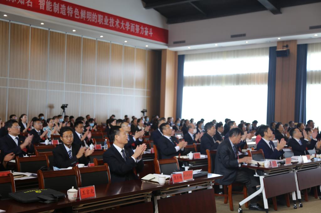 郑德前号召,全体师生员工要更加紧密地团结在以习近平同志为核心的党中央周围,不忘初心,牢记使命,以永不懈怠的精神状态和一往无前的奋斗姿态,团结带领广大师生凝心聚力、守正创新、加快发展,为建成国内领先、国际知名,智能制造特色鲜明的职业技术大学而努力奋斗。