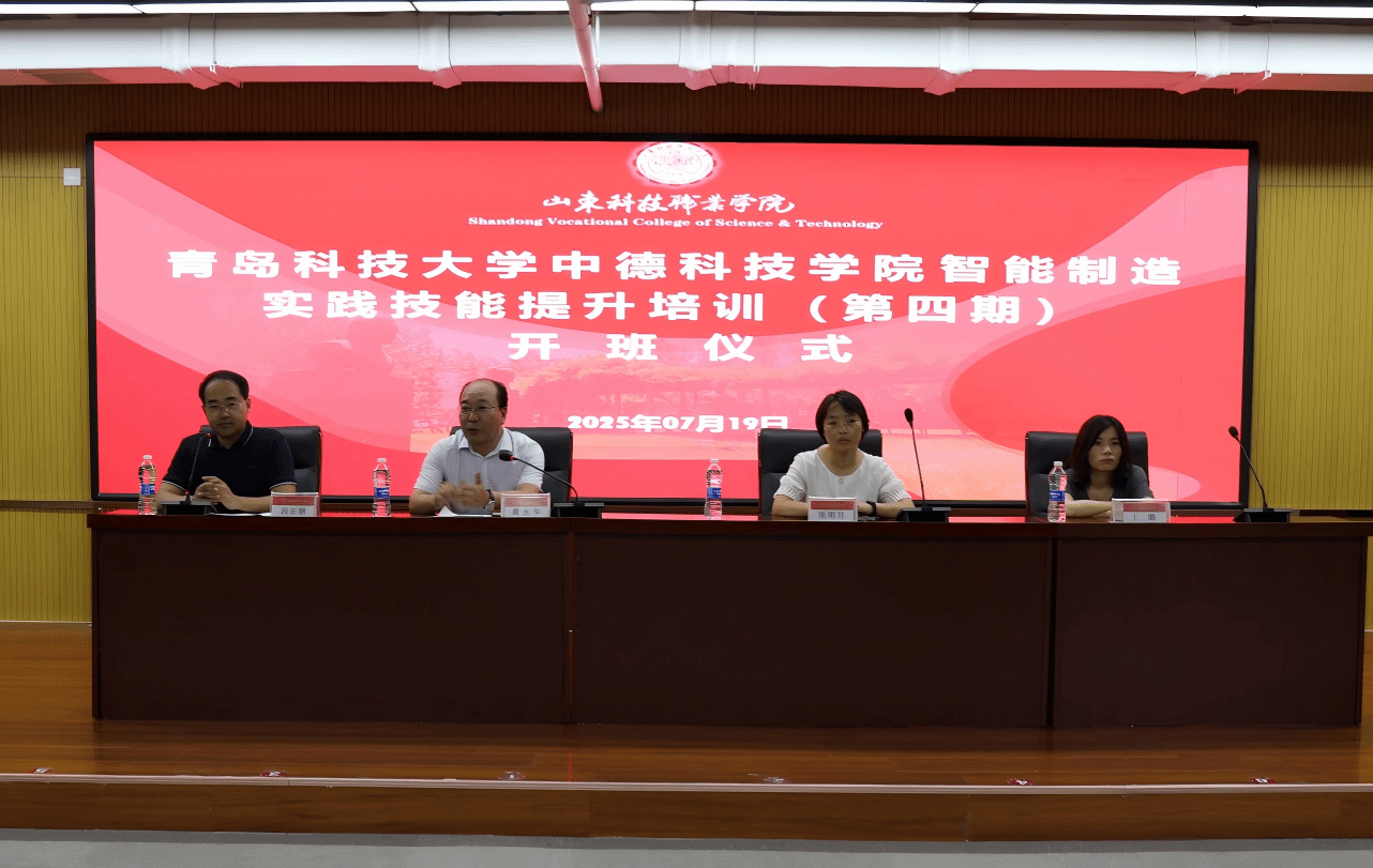 2025年7月19日下午,青岛科技大学中德科技学院智能制造技能提升培训(第四期)开班仪式在bw必威西汉姆联西门子报告厅举行,来自青岛科技大学中德科技学院的104名学生参加了本次培训。必威西汉姆联官网首页主任黄永华、副主任段宏钢,青岛科技大学中德科技学院自动化教研室张明月、王璐老师出席开班仪式。
