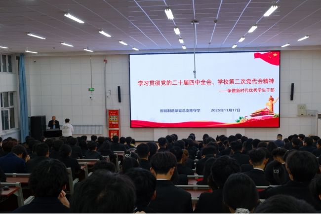 党课围绕党的二十届四中全会的重要意义、习近平总书记重要讲话精神和“十五五”时期发展蓝图进行了系统解读,并结合学校第二次党代会确定的“一三五八十”思路举措,号召全体学生干部深刻领会国家与学校发展大局,将个人成长自觉融入时代征程。陈守学强调,学生骨干要争做新时代优秀学生干部,做到“会说、会写、会干、会做思想工作”,弘扬“精为”文化,在专业学习、学生工作和系风学风建设中发挥模范带头作用。
