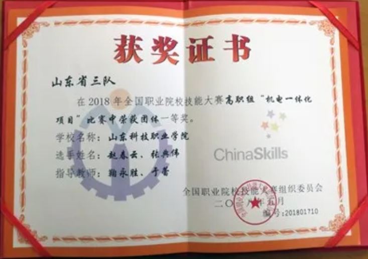 2018年全国技能大赛机电一体化项目获一等奖