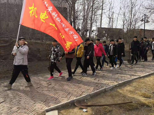 植树现场,系旗飞扬,全体师生热情高涨,干劲十足,挽起袖子,拿起铁锹,互相配合,扶苗、对齐、填土、踩实,每道工序都一丝不苟、认真细致。植树间隙,机电工程系老师们与同学们亲切交流,了解同学们日常生活学习和参加学雷锋志愿服务活动的情况,师生们共同体会了亲自栽种的快乐,为校园增添了一抹绿色。经过数小时的辛勤劳动,几百棵树苗在校园里 “安家落户”,为校园添上了一片生机。