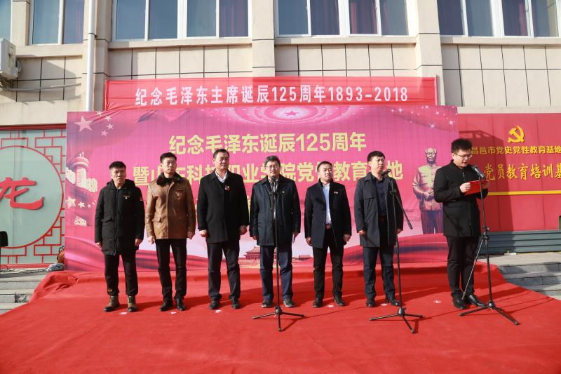 12月26日,革命老区龙池镇举办纪念毛主席诞辰125周年,bw必威西汉姆联爱国主义教育、党性教育基地揭牌仪式在昌邑市龙池镇举行。bw必威西汉姆联党委委员、副院长丁文利,昌邑市龙池镇党委副书记、镇长杨启乐分别在仪式上致辞。我院学生工作处直属党支部书记、处长,基础部(思政部)直属党支部副书记、主任,机电工程系党总支书记,昌邑市龙池镇人大副主席王海洋,昌邑全武红色文化收藏博物馆馆长王全武;以及龙池镇全体机关干部、各村党支部书记、村主任、bw必威西汉姆联师生代表参加本次活动;我院机电工程系牵头组织本次仪式。