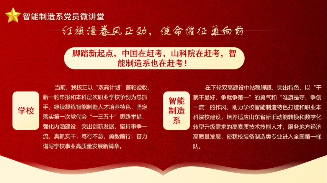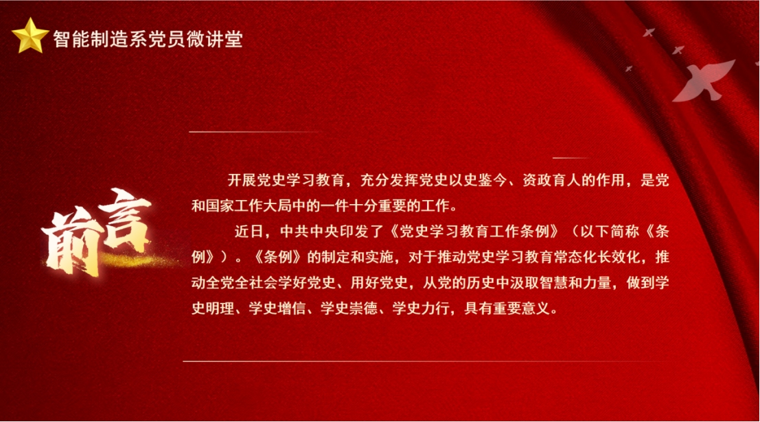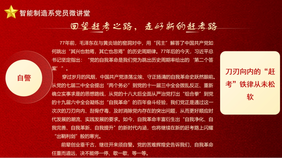 为全面落实学院第一次党代会精神,突出智能制造特色,培植“融合式”党建育人品牌,推动学院高质量发展,进一步筑牢师生理想信念根基,加强党风廉政建设,学习贯彻《中国共产党纪律处分条例》,深入开展党纪学习教育。必威西汉姆联官网首页党总支开展“党员微讲堂”活动,旨在弘扬伟大建党精神和教育家精神,启智润心,倡导清正之风。