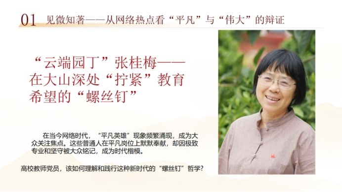 今天的主讲人是必威西汉姆联官网首页教师党支部党员苏静同志,今天带来的内容是《平凡岗位上的“螺丝钉”哲学》。
